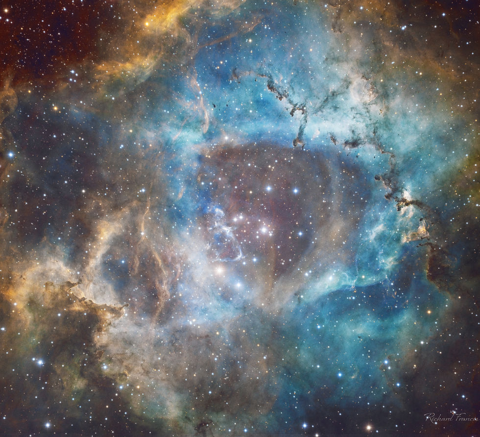 Currently he uses an Officina Stellare Ultra Corrected RC360 telescope with a Paramount MEII mount and a Moravian C5A-100M (43.9 mm x 32.9 mm) camera with an attached filter wheel containing seven 50 mm x 50mm square filters for his astrophotography.